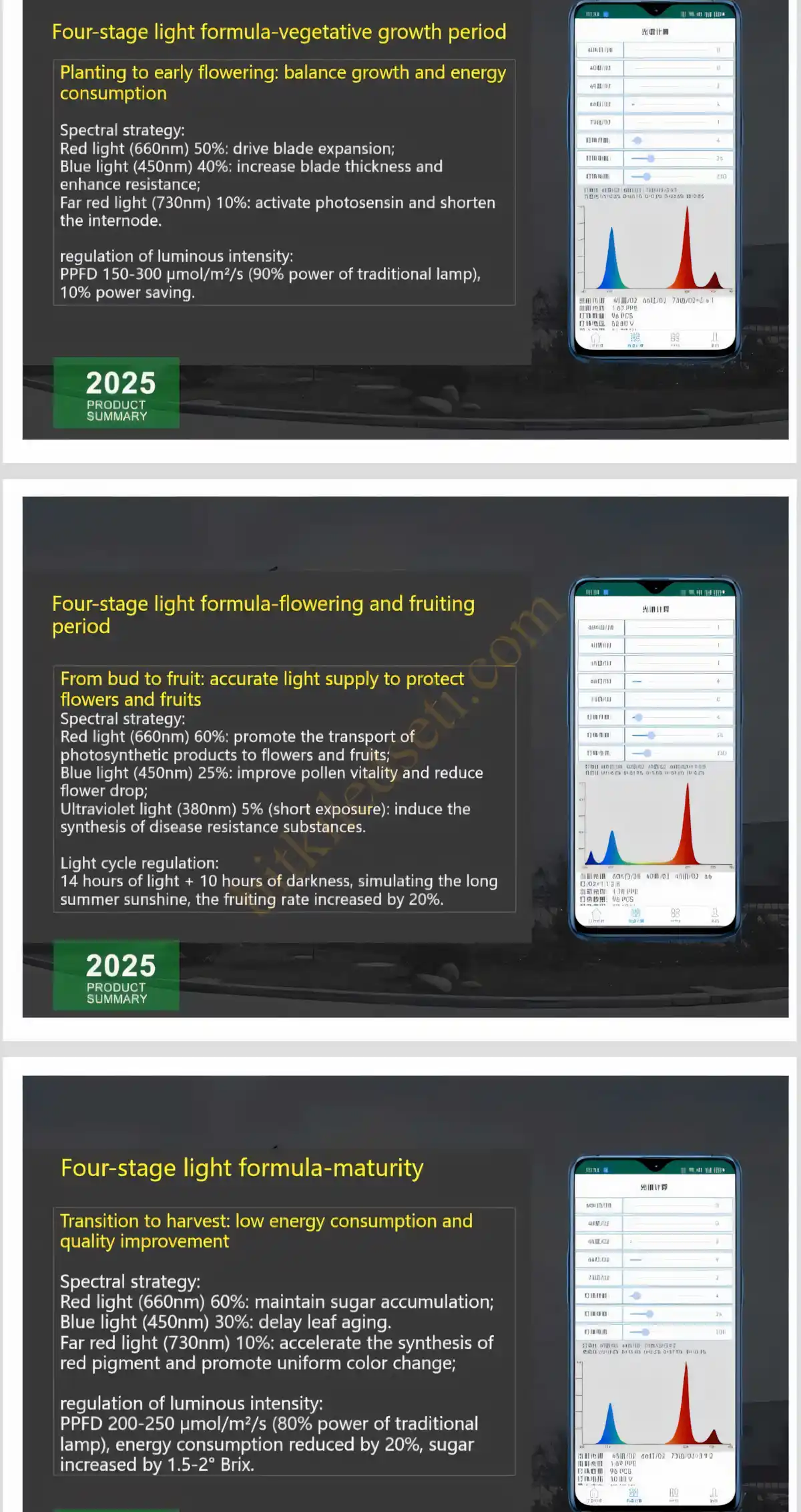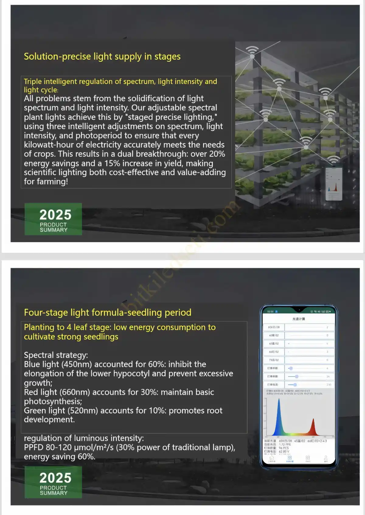 - Tam Spektrum: Bitkilerin tohumdan hasada kadar tüm evrelerine uygun full spektrum ışık desteği sunar.